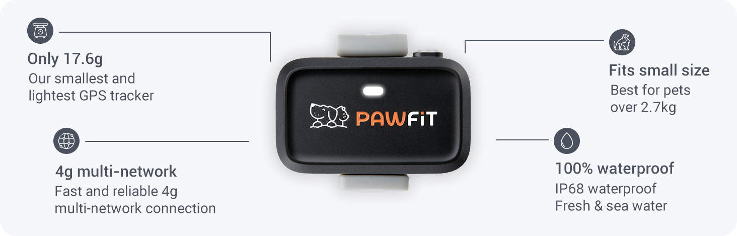 Our smallest and lightest GPS tracker yet, designed for cats and small dog breeds. Featuring everything you need to keep your cat or dog safe.